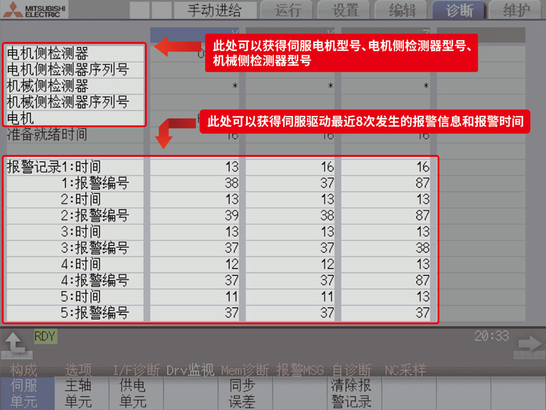 <svg viewbox="0 0 1 1" style="float: left; line-height: 0; width: 0px; vertical-align: top; visibility: visible;" role="img" aria-label="插图"></svg>三菱电机M80系统伺服驱动诊断画面里对数控系统里伺服的硬件配置,伺服系统的实时状态,伺服报警的记录等都有实时的监控功能,所以学会读懂M80系统伺服驱动诊断画面的信息,对我们了解数控系统伺服实时的状态及故障的判定是很有帮助的。本文以下内容就是对常用的伺服诊断画面的介绍。